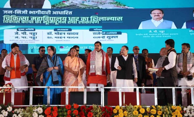 मध्यप्रदेश में स्वास्थ्य क्षेत्र की ऐतिहासिक पहल। धार और बैतूल में पीपीपी मॉडल पर देश के पहले मेडिकल कॉलेज का शिलान्यास, मुख्यमंत्री डॉ. मोहन यादव और केंद्रीय मंत्री जे.पी. नड्डा ने बताया बड़ा कदम।