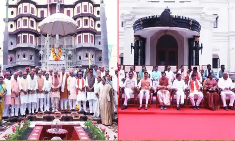 मध्य प्रदेश सरकार की कैबिनेट मीटिंग इंदौर में हो रही है। माता अहिल्याबाई होलकर की 300वीं जयंती पर इंदौर के राजवाड़ा में मोहन कैबिनेट की मीटिंग हो रही है। कैबिनेट की मीटिंग से पहले राजवाड़ा में सीएम मोहन यादव ने मंत्रियों के साथ ग्रुप फोटो खींचवाई है। इस ग्रुप फोटो पर सबकी निगाहें टिकी थी कि विवादित मंत्री विजय शाह इसमें दिखेंगे या नहीं। सरकार की तरफ से जारी तस्वीरों में विजय शाह कही नहीं दिख रहे हैं। वह मध्य प्रदेश के जनजातीय कार्य मंत्री हैं।