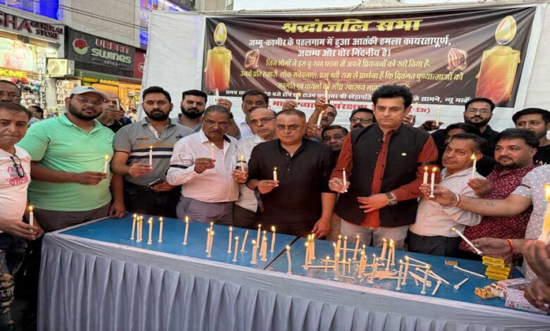 संरक्षण समिति(रजि)" के बैनर तले टॉप एन टाउन चौराहे पर न्यूमार्केट के व्यापारियों ने श्रद्धांजलि सभा आयोजित की, साथ ही साथ व्यापारियों ने भारत सरकार से आतंकवाद पर निर्णायक प्रहार करने की पुरजोर मांग की ।