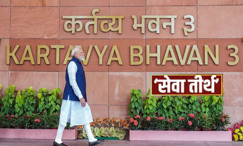 PMO और सेंट्रल विस्टा के प्रशासनिक ब्लॉक का नाम बदलकर ‘सेवा तीर्थ’ रखा गया। जानिए भारत में हुए बड़े नाम परिवर्तनों की पूरी सूची और सरकार का तर्क।