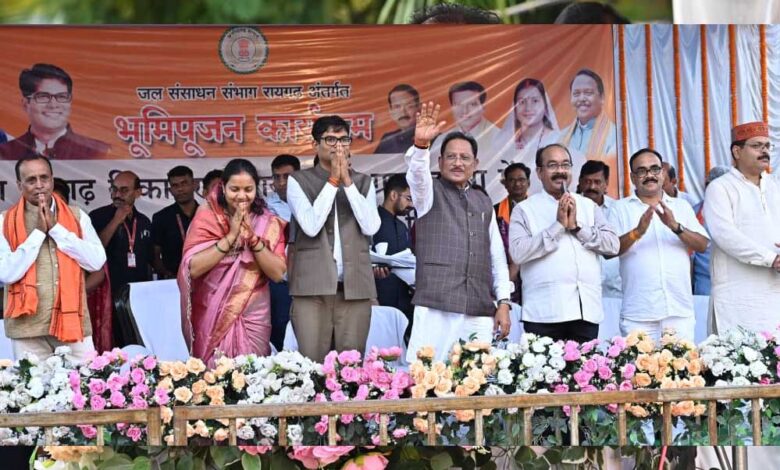 मुख्यमंत्री विष्णु देव साय ने आज रायगढ़ जिले के ग्राम बायंग (कछार) में 38 करोड़ रुपये की लागत से मांड नदी बायंग एनीकट कम काजवे निर्माण कार्य का भूमिपूजन किया। इससे लाभान्वित गांवों में भू-जल संवर्द्धन होगा तथा आवागमन की सुविधा भी बढ़ेगी। एनीकट कम काजवे निर्माण से 100 हेक्टेयर क्षेत्र में सोलर संयंत्र और पाइपलाइन के जरिए सिंचाई सुविधा भी उपलब्ध कराई जाएगी। इस अवसर पर उप मुख्यमंत्री अरुण साव, वित्त मंत्री ओ.पी. चौधरी और महिला एवं बाल विकास मंत्री श्रीमती लक्ष्मी राजवाड़े उपस्थित थीं।