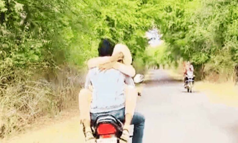 वायरल वीडियो में साफ देखा जा सकता है कि युवती बाइक चला रहे युवक को झप्पी डालकर बैठी है। सड़क पर साथ चल रहे राहगीरों ने इस खतरनाक स्टंट को अपने मोबाइल कैमरे में कैद कर सोशल मीडिया पर अपलोड कर दिया, जिसके बाद यह वीडियो तेजी से वायरल हो गया।
