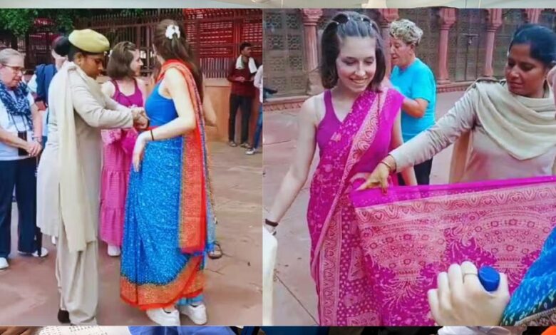 यूपी की महिला सिपाही बनी ‘साड़ी गुरु’, विदेशी मेहमानों को सिखाया भारतीय परिधान पहनना