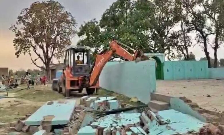 बलरामपुर में सार्वजनिक भूमि पर निर्माणाधीन मदरसे को रविवार को ध्वस्त कर दिया गया. यहां अब तक 30 मदरसे, 10 मजार और 1 ईदगाह को अवैध पाते हुए ध्वस्त किया गया है. इनमें 10 मदरसे, 10 मजार और 1 ईदगाह सार्वजनिक भूमि पर स्थित थे, जबकि 20 मजारें निजी भूमि पर अवैध रूप से निर्मित थीं.